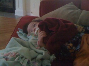 Daddy came down with the same gastrointestinal virus that afflicted the kids earlier in the week. For Alton that meant throwing up twice, then running laps around the living room. Nikola threw up once or twice and was subdued for about 24 hours. We’re still waiting to see how long this lasts, but it seems like about a 24 hour bug.