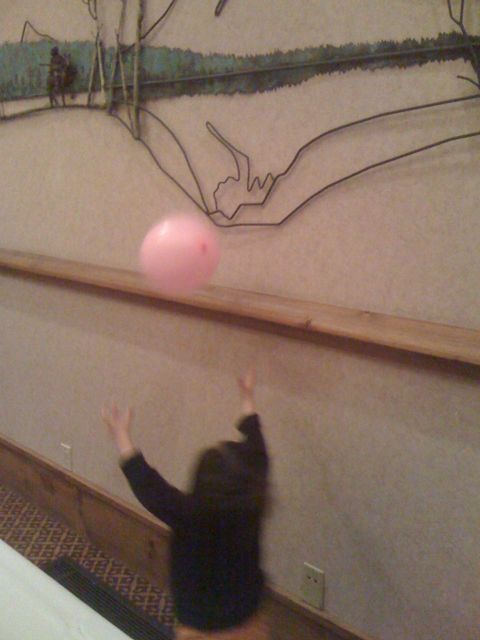 At the conference reception, Alton absconds with a balloon and experiments with Bernoulli’s principle over an air vent.