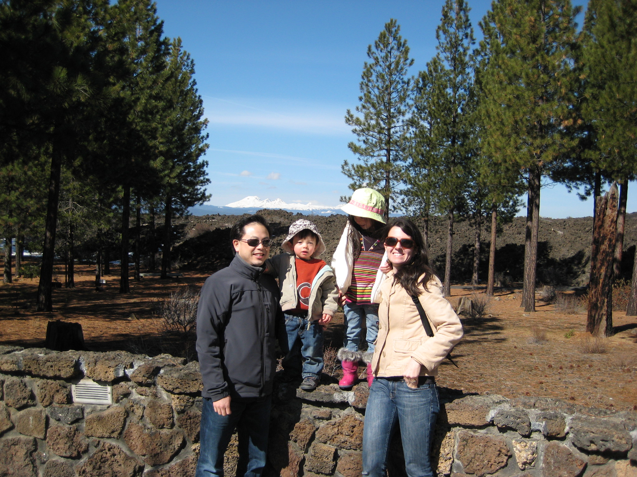 The following day (Saturday) was lectures beginning at 6:30, but we were free by 9:30 for the rest of the day! Bend is very pretty, but given how poorly the kids had slept the previous two nights, we opted to just check out some local sights. The area is volcanic in origin, and there was a national park to wander around in. The kids were getting pretty punchy toward the end, so back to the resort for naps.