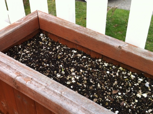 This may look like just an empty planter on the lonely front deck, but if you look carefully you can see the first shoot of our many pea pods that we planted several weeks ago. It has been so long that we were beginning to suspect that they all died from the snap frost and non-stop rain that we’ve been having this Spring. There are now a few little tendrils from his 19 other brothers in the planter and their 36 sisters in the backyard, so hopefully the kids will have some produce that they can pick later in the year.