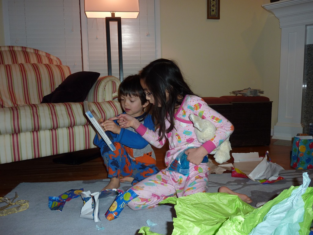 One of Alton’s gifts was a Lego Star Wars kit (his current obsession) that was fairly generically labelled as “IMPERIAL PILOT”. He asked Nikola to read the box to him. She was not at a particularly good reading angle, so she told him “imperial PLOT” and he was more than excited to add an “imperial PLOT” to his growing fleet. When she got a better look at the box and corrected her error, he wouldn’t hear anything of it and was particularly resistant to her calling it an “imperial PILOT”. Fortunately, he then built a “rebel PLOT” craft so that they could be friends.