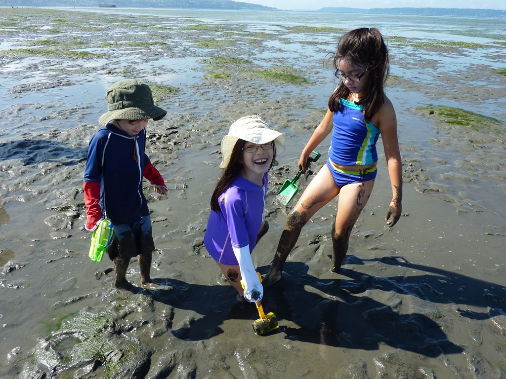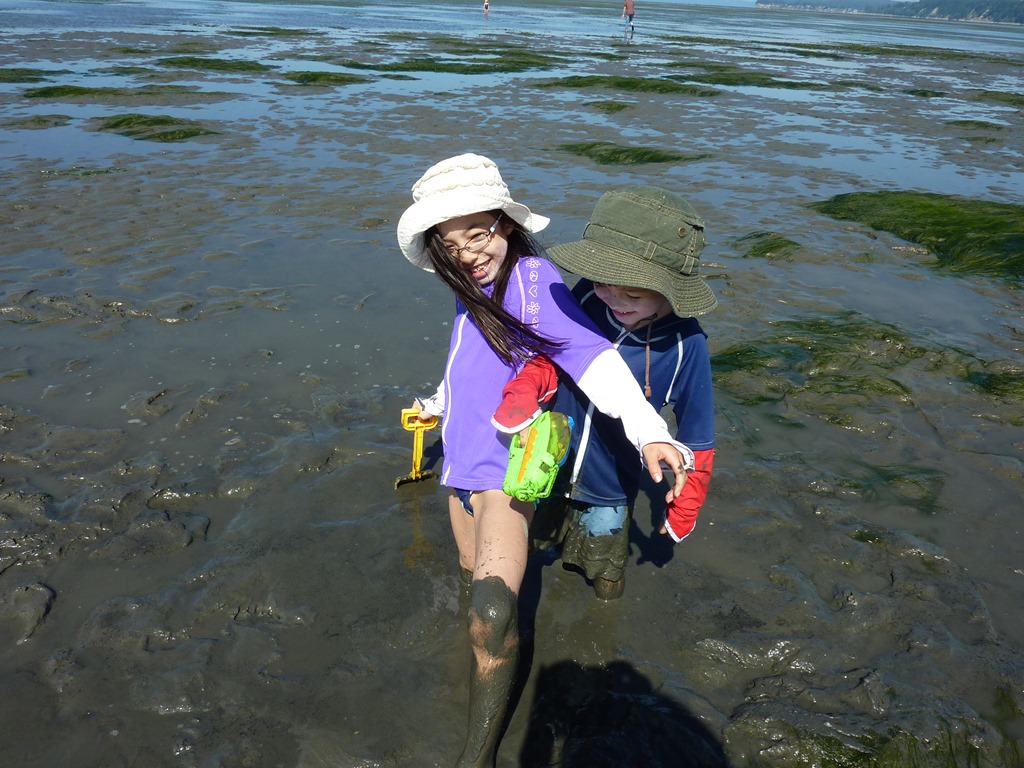 Shaynee and the kids took another trip to Jetty Island, this time with our friends Susan & Monse. Apparently, the tide was really really low and the shelf stretched quite far out, the furthest that we have ever seen. Thus, the kids were up to their knees in sea mud and kelp. Mmm. Sea mud.