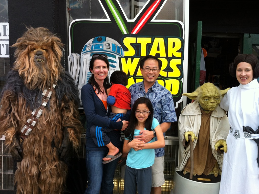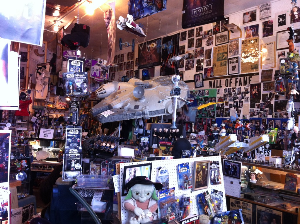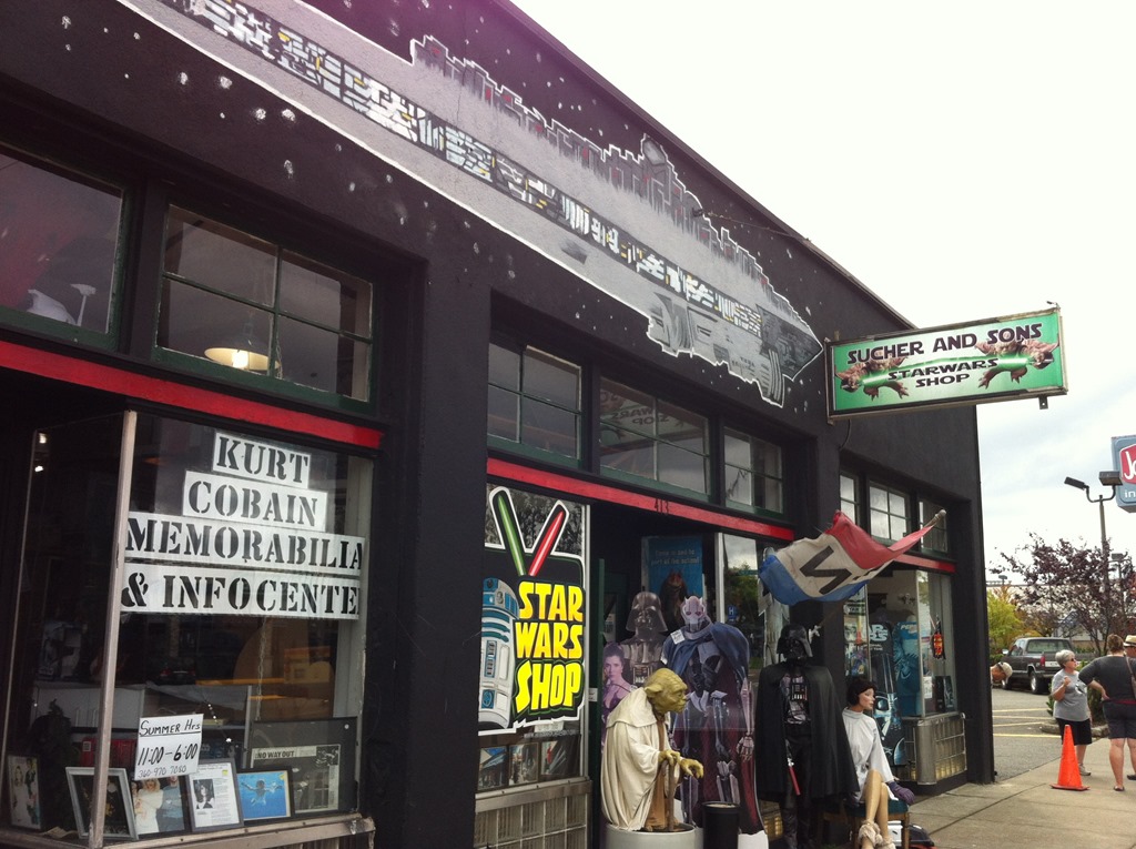 On the way through Aberdeen we had passed “Sucher and Sons: Star Wars Shop”, so we made a stop on the way back through. King 5 was filming a piece on the store, which had started as a summer project to occupy his kids then became a hobby, then an obsession. It’s quite a sight inside. We didn’t escape unscathed, buying two overpriced used Jedi starships.