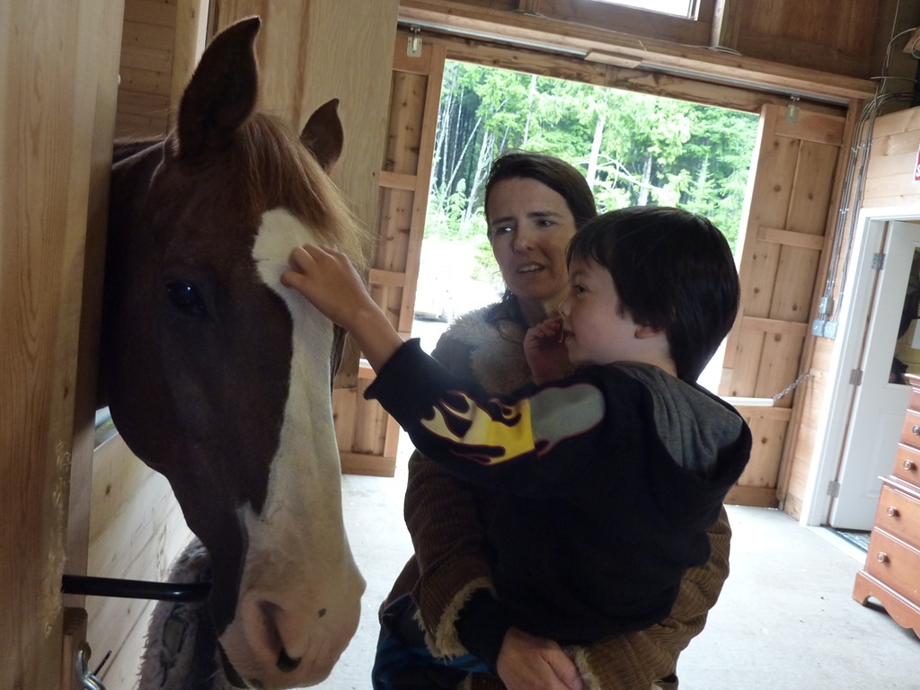 Last day at Seabrook. It was a little drizzly, but there was enough sun break for Nikola to take a little horseback (well, pony) riding class before we left. Alton communed with the barn bunny.