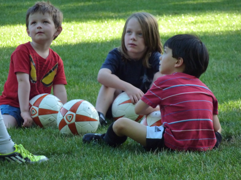 Prior to practice, Alton had some trepidation while getting suited up in his new shorts and socks. “I’m not so sure about this,” he told Shaynee. However once under way, he really seemed to be enjoying himself. Starting the practice off with a round of “Kick the coach” certainly got the boys’ interest, and was right up Alton’s alley. There is the possibility that he might actually end up liking this.