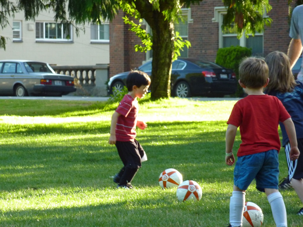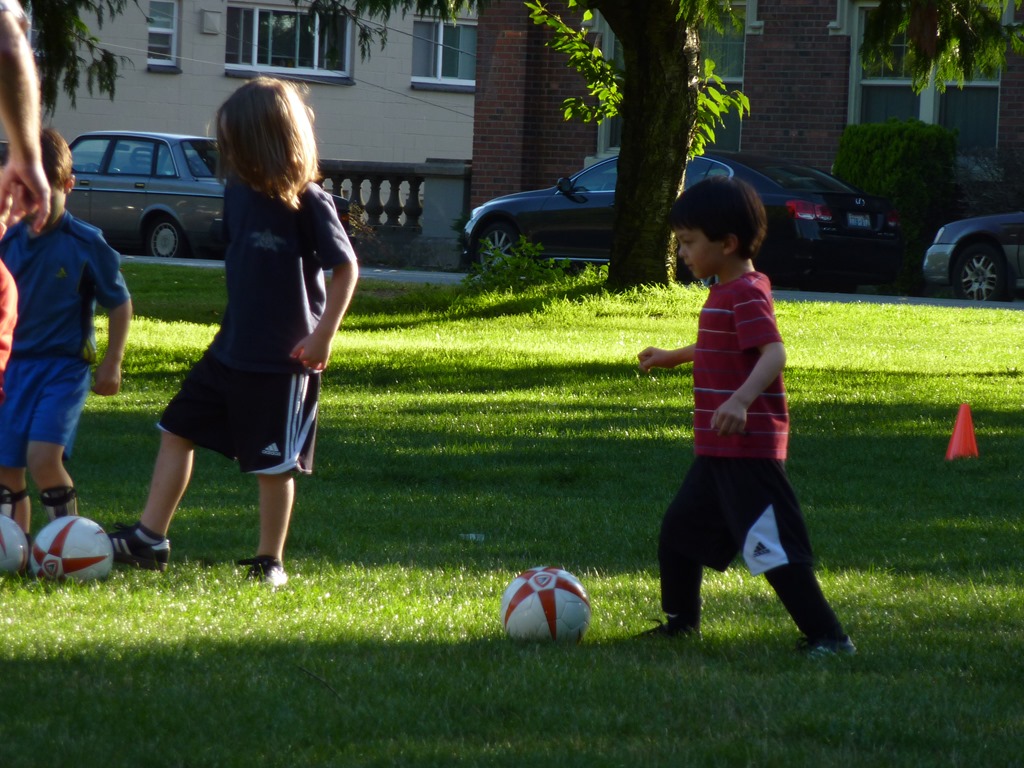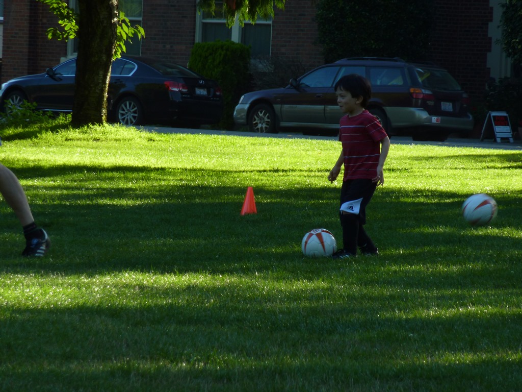 Today was Alton’s first soccer practice. Brodie is on the team, along with 5 other guys that Alton doesn’t know yet (but will all be starting kindergarten at West Woodland next week). Brodie’s dad, Coach Mike, is, well, coach. Also, Coach Joe.