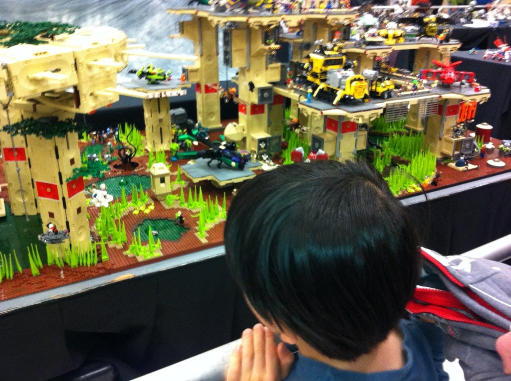 Alton was already excited by the prospect of having a dad-and-son-only activity. But as soon as we hit the convention floor, he froze in wide-eyed wonder. Frankly, I was pretty astounded too. These were easily some of the most amazing Lego creations that I have ever seen. We perused the rows and rows of display tables of amazing structures and spacecraft and animated dioramas. It certainly gave a dad a sense of Lego inadequacy. Alton, on the other hand, wanted to build it all.