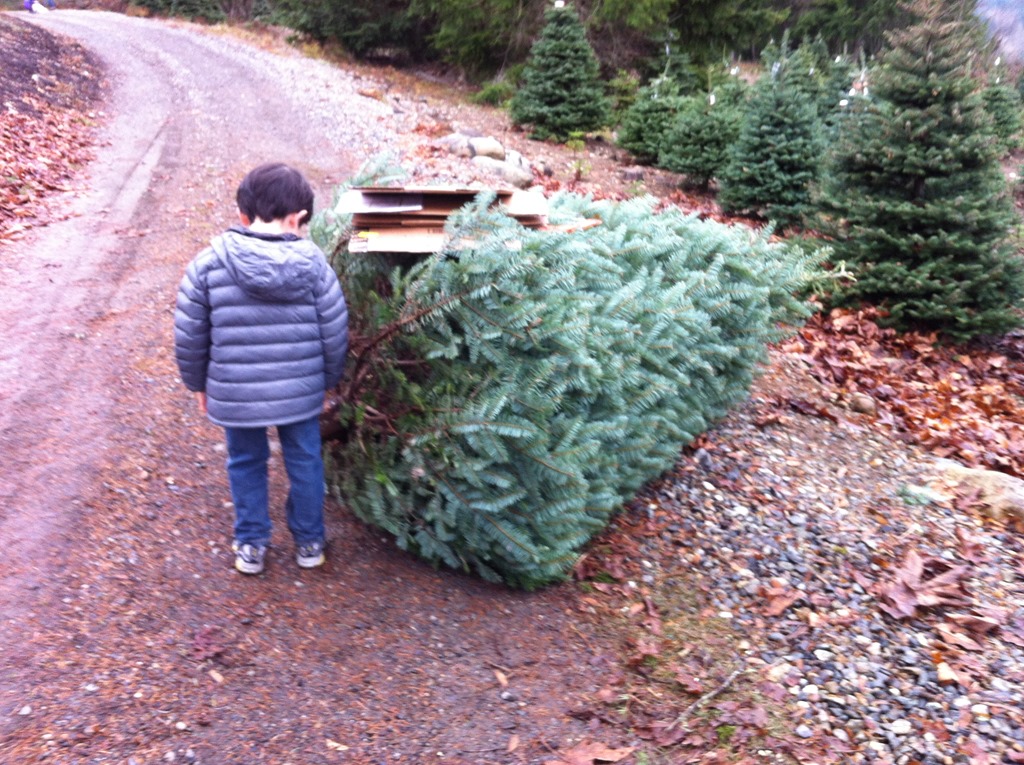Alton and Popo & Gung gung & daddy drove out to the tree farm in Issaquah to fell a Christmas tree.