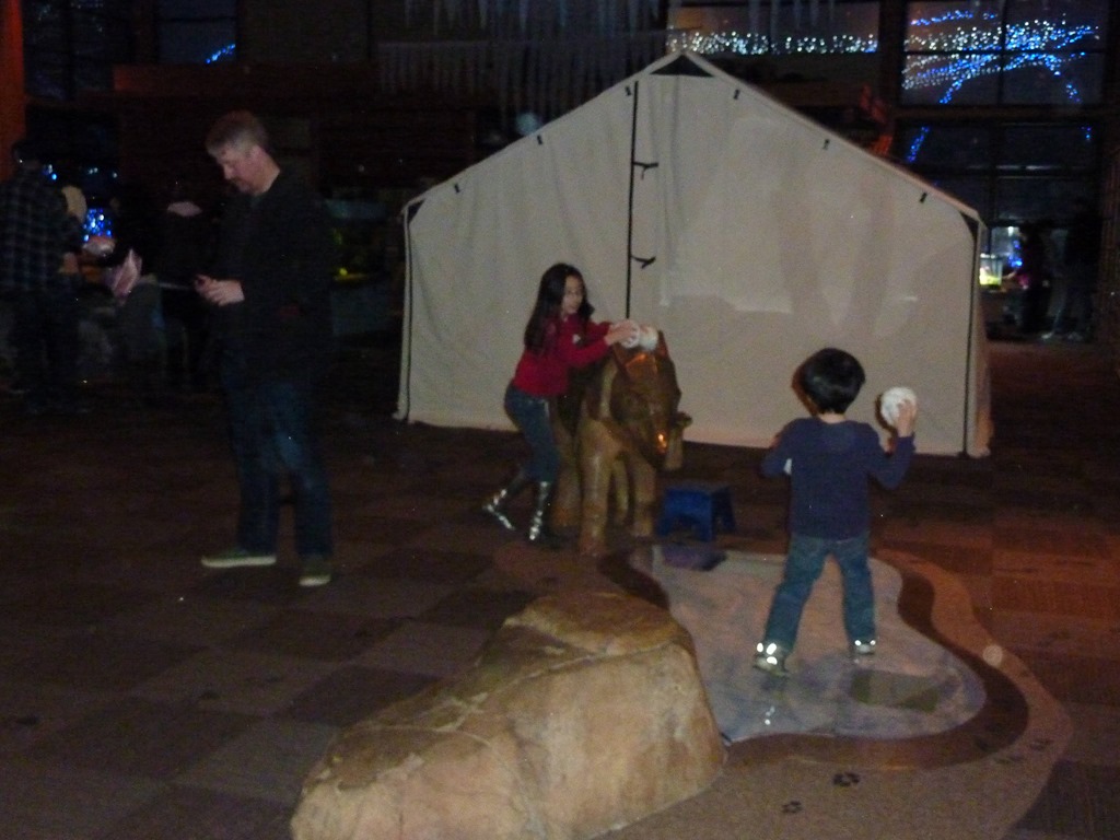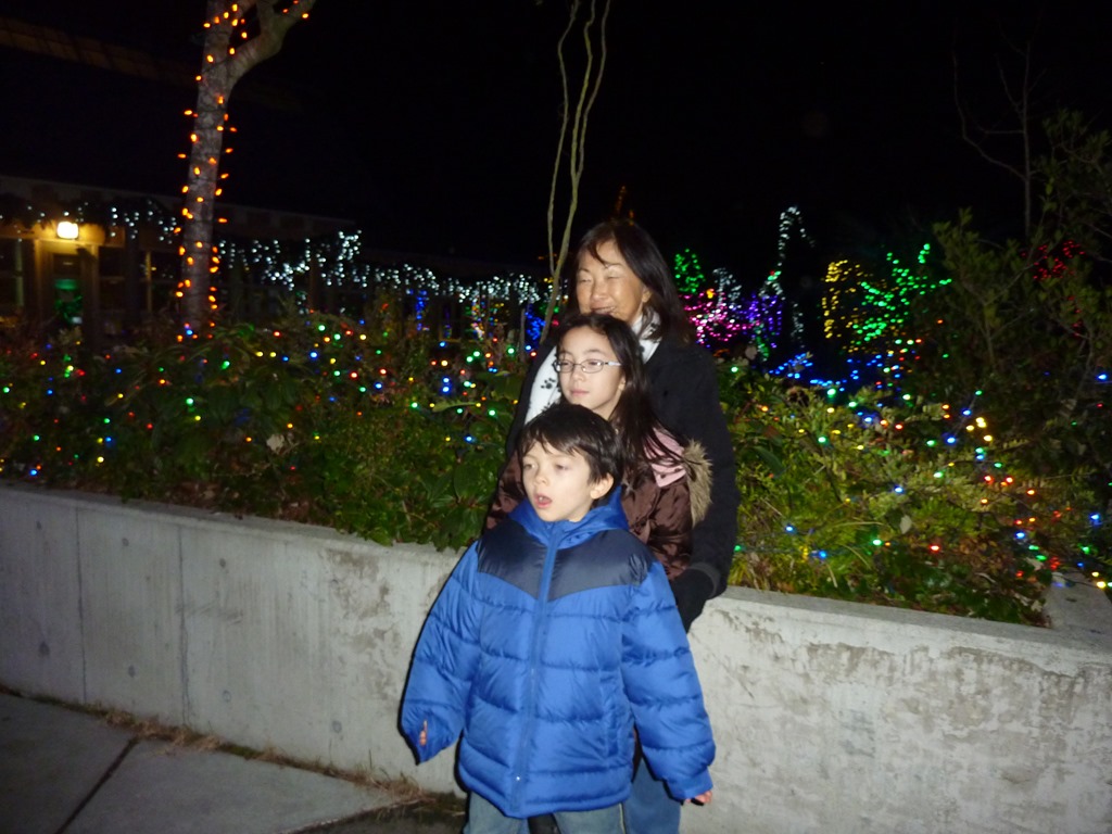 Later, we all went to the ZooLights experience at the Woodland Park Zoo. There were definitely more lights and more going on than its inaugural show last year. Not quite as flashy as some other winter light exhibits in the region, but without a long drive to a cold windy place (Tacoma) or sitting in gridlock to find parking (Bellevue).