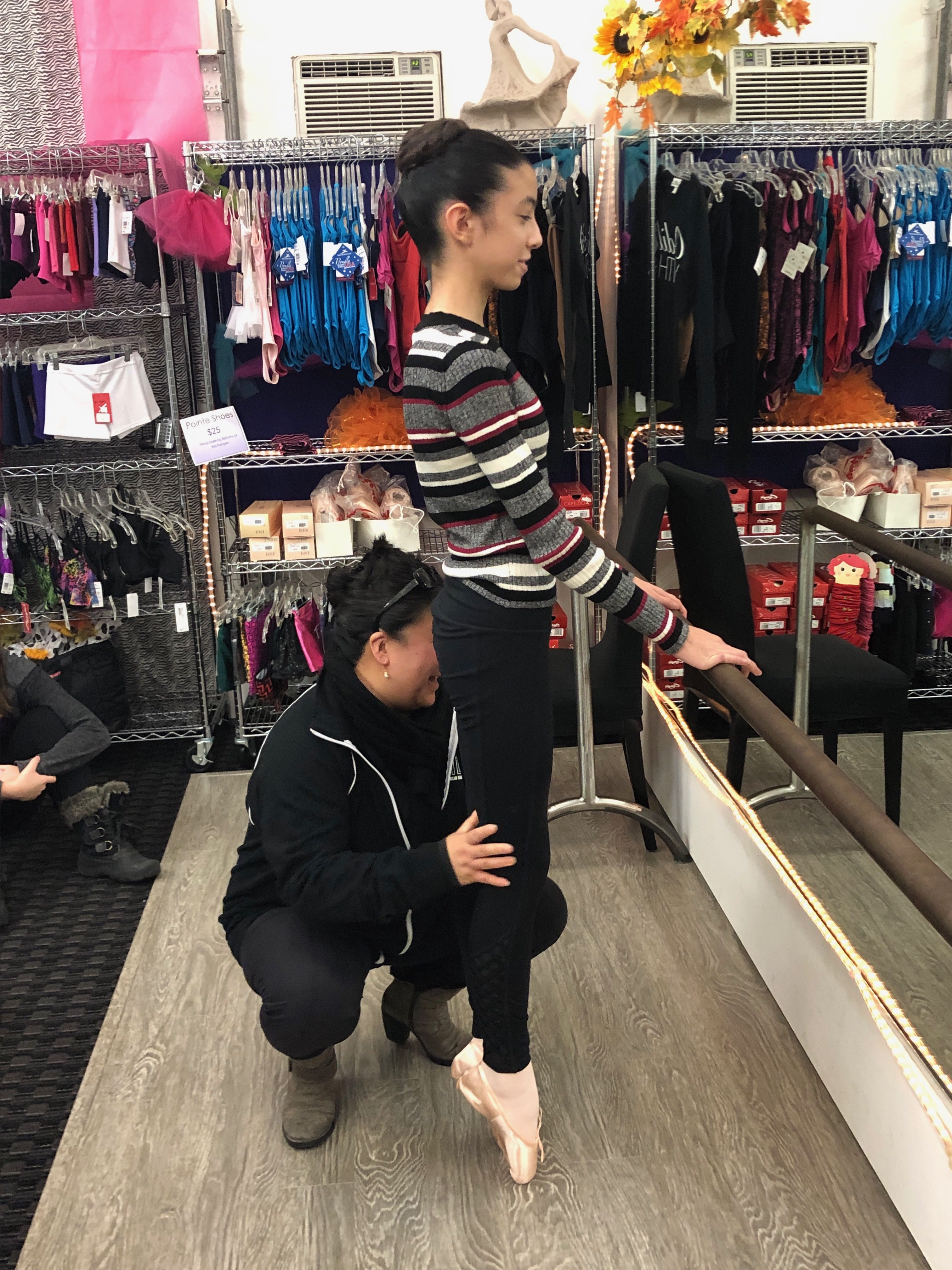 Whereupon Nikola gets her pointe shoes. Ms Marie takes an entire cohort to one store in Tacoma for their first fitting.