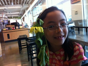 We did some trimming in the new garden boxes. The sunflowers have gone wild so we had a lot of sunflower clippings that the kids were parading around as their “flags”. Nikola and I ran some errands and she still wanted to carry her flag. Later on, she decided that she wanted to give the …
