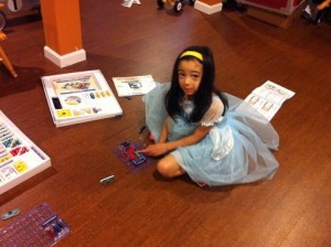 Shaynee found this RadioShack electronics kit at a garage sale for $2. Nikola and Alton want to “do electronics” every night. This is a circuit that Nikola built herself, based on some other projects from the manual (launches the propeller into the air). I especially like the juxtaposition of princess and maker.