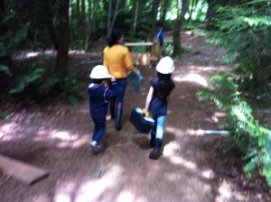 We spent the afternoon at the Adventure Playground. On Mercer Island, this play area is a cordoned off area of Deane’s Children’s Park where kids can build structures in the woods. The park supplies hardhats, work gloves, toolboxes, nails and fasteners. The kids rummage for lumber, rope, fasteners, and anything else they can find in …